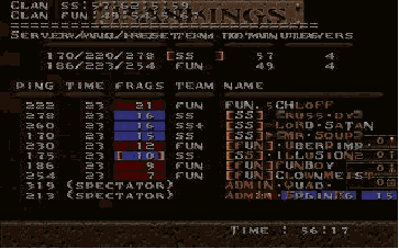 First game AWAY on: DM3 Team was: Lord Satan, Illusion2, Russdy and Mr. Soup Final Score: 56-19